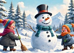 Tapeta dnia wybrana !! Wygrała tapeta Zima, Las, Drzewa, Krzewy, Noc, Dom, Światła, Latarnie, Śnieg, AI [LINK], dodana przez Ewa15 Gratulujemy!!