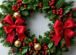 Tapeta dnia wybrana !! Wygrała tapeta Wianek, Bombki, Kokarda, Dekoracja, Boże Narodzenie, Grafika AI [LINK], dodana przez GraGorek Gratulujemy!!