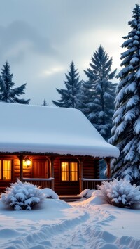 Tapeta dnia wybrana !! Wygrała tapeta Zima, Las, Drzewa, Krzewy, Noc, Dom, Światła, Latarnie, Śnieg, AI [LINK], dodana przez Ewa15 Gratulujemy!!