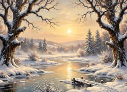 adminTapeta dnia wybrana !! Wygrała tapeta Zima, Drzewa, Dolina, Góry, Wschód słońca, Grafika AI [LINK], dodana przez GraGorek Gratulujemy!!