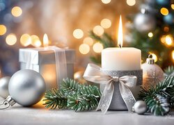 Ośnieżona, Gałąz, Bombki, Świąteczne