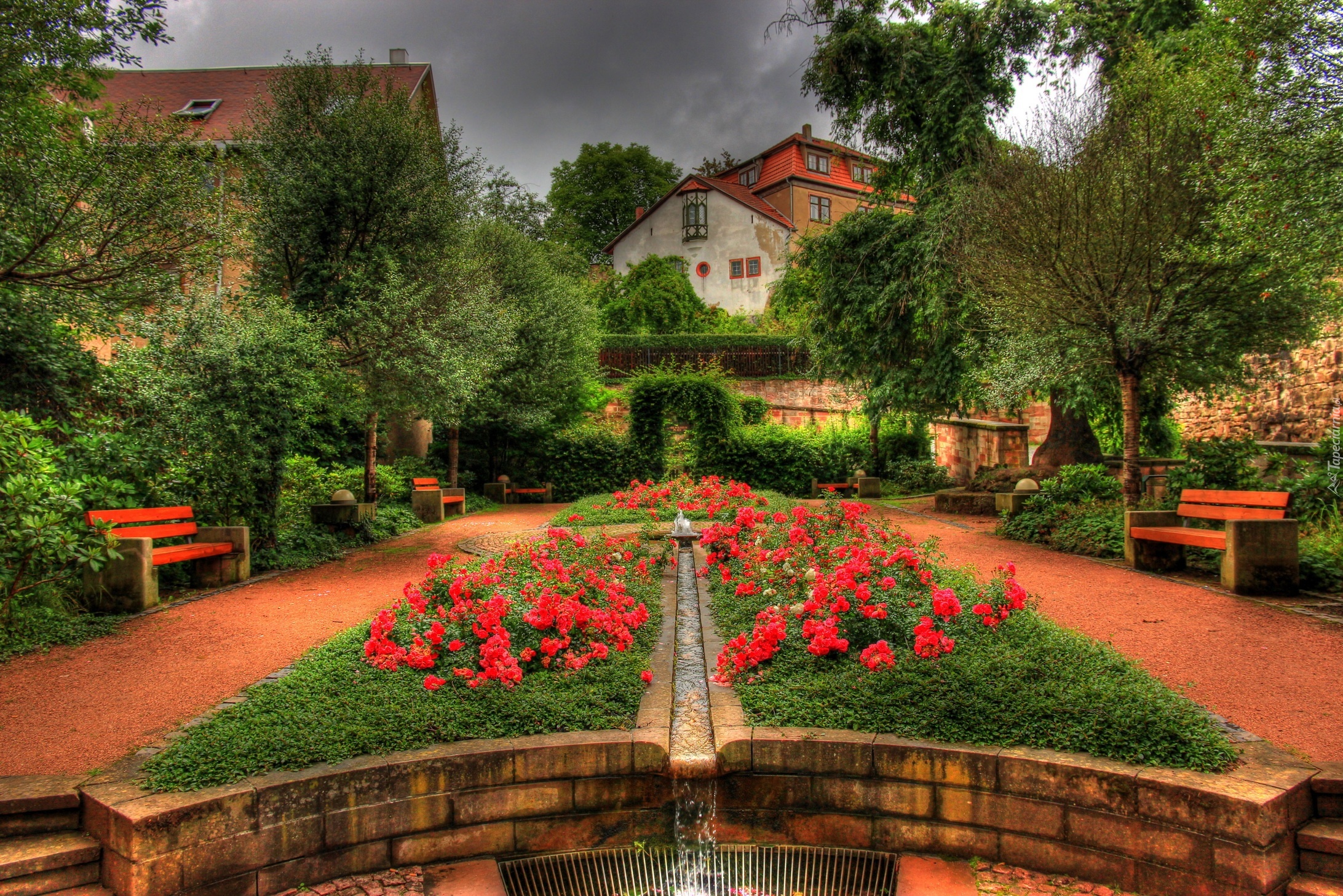 Ogród, Ławeczki, Dom
