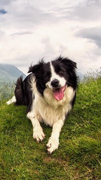 Border Collie, Góry, Zachmurzone, Niebo