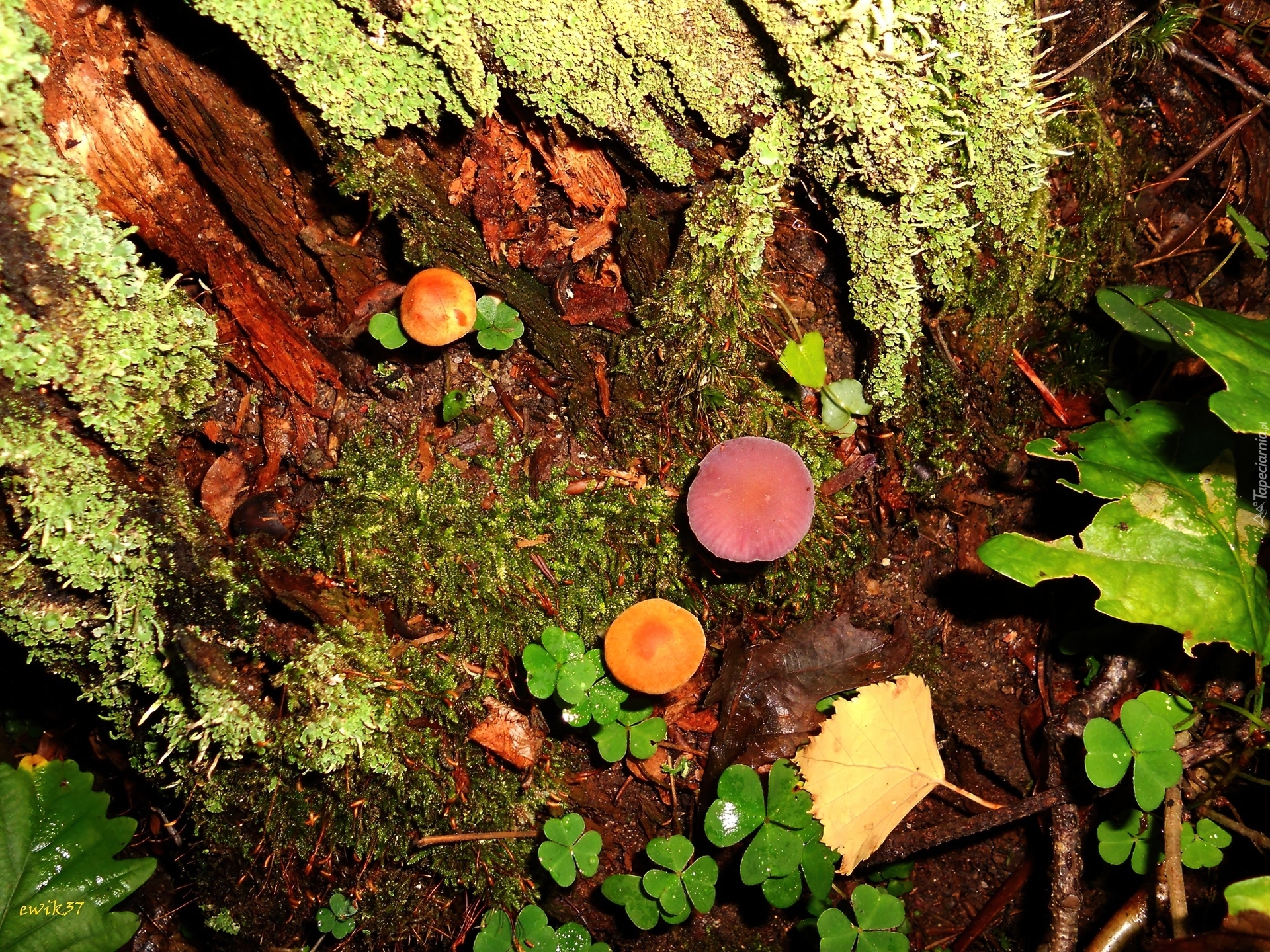 Las, Omszały, Pień, Różne, Grzyby, Liście