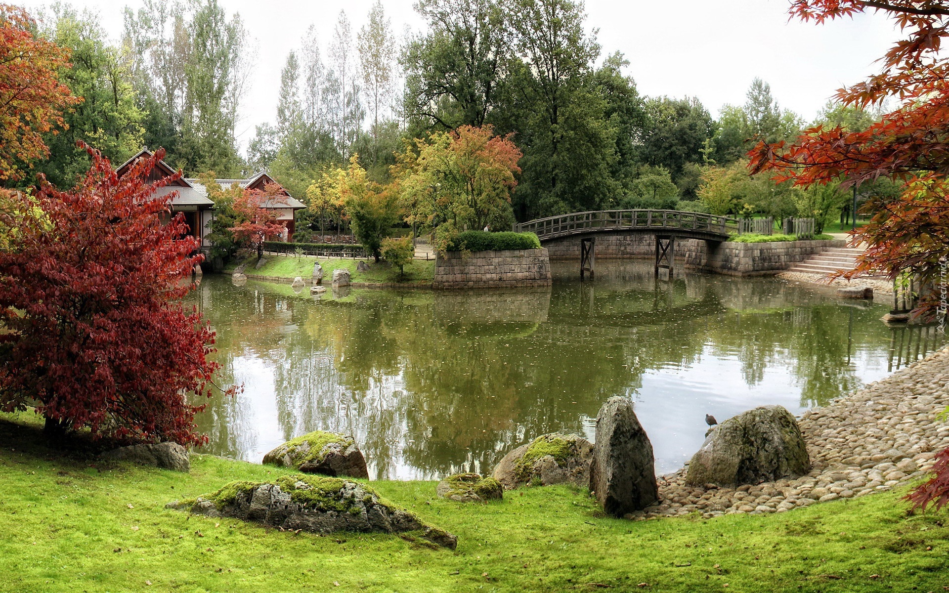 Park, Rzeczka, Mostek, Kolorowe, Drzewa, Jesień