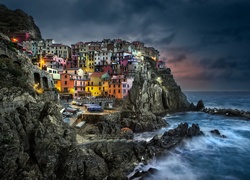 Łódki, Domy, Manarola, Włochy, Wybrzeże Liguryjskie
