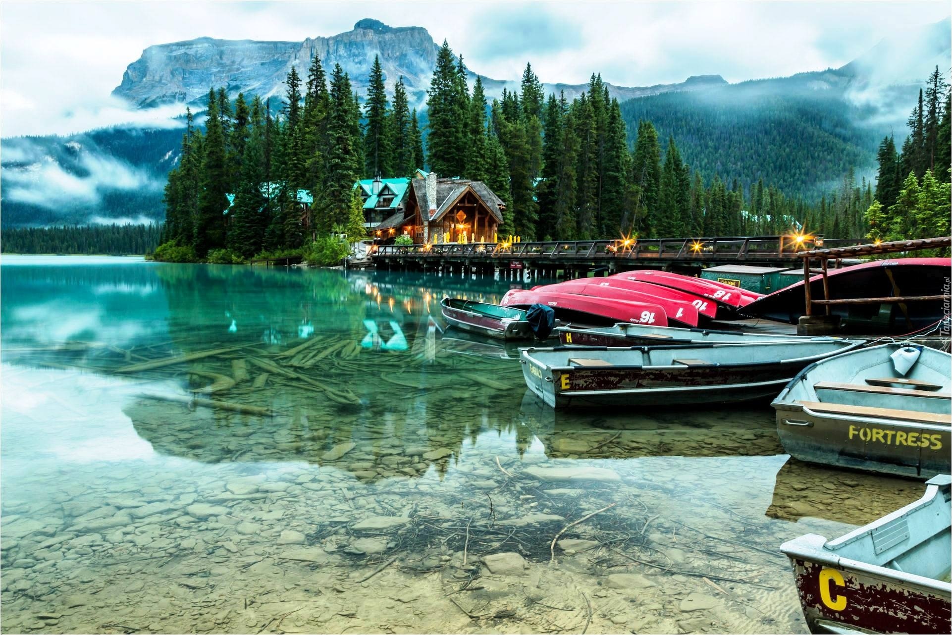 Dom, Kajaki, Łódki, Góry, Las, Jezioro, Esmerald, Kanada