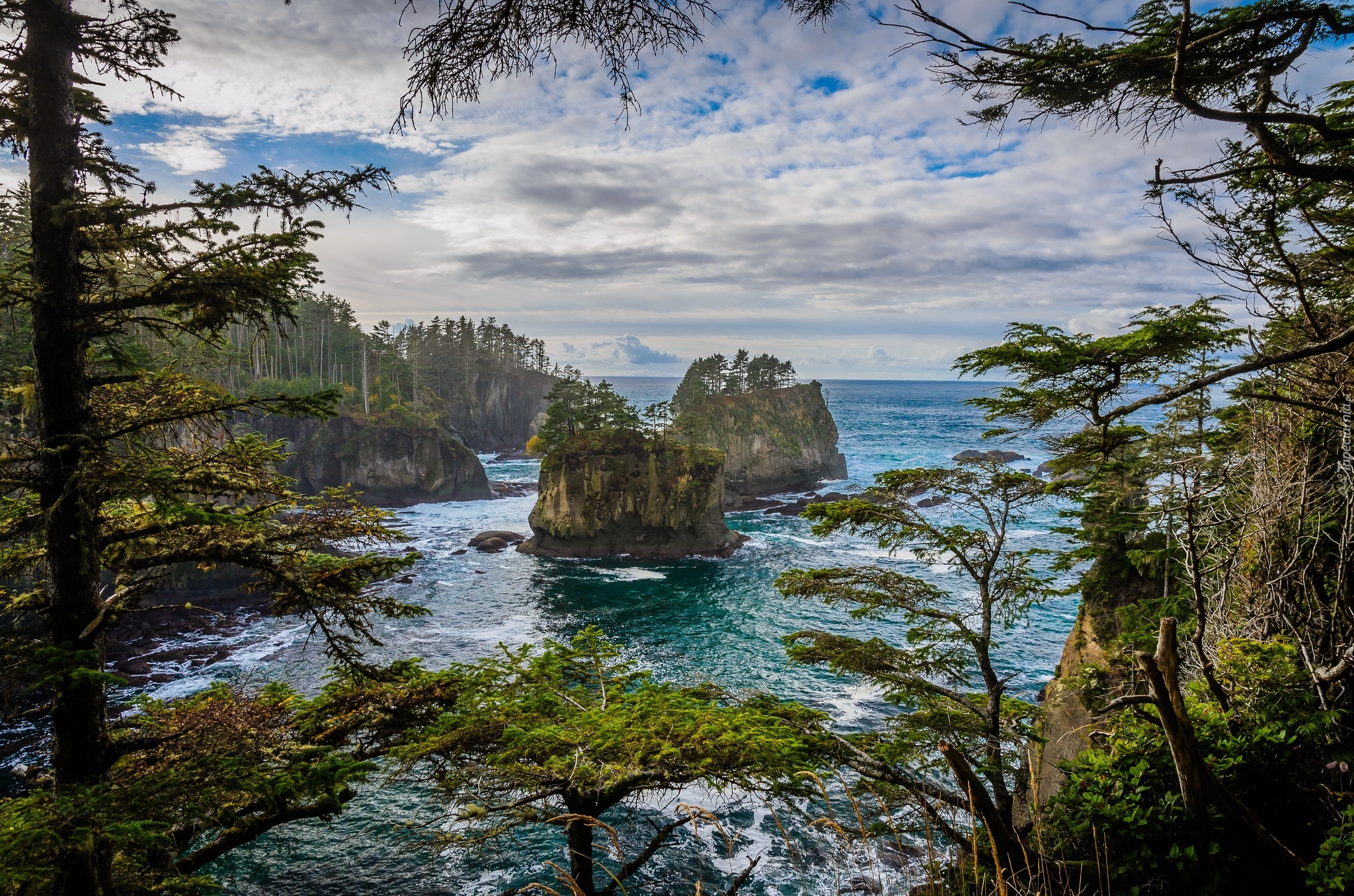 Niebo, Morze, Skały, Las