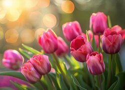 Leżące, Czerwone, Tulipany, Krople, Bukiet