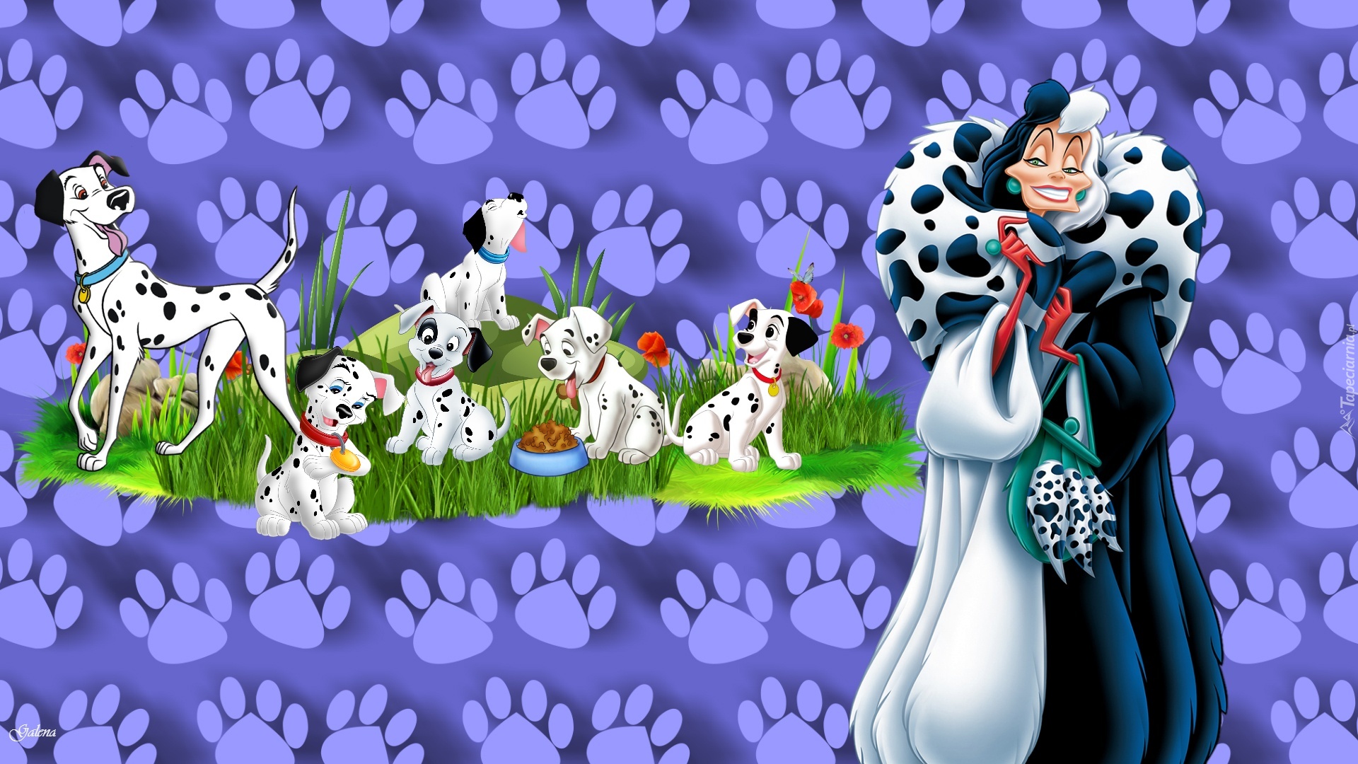 Cruella Demon, Dalmatyńczyki, Psy, Trawa, Łapy, Grafika, Dla dzieci