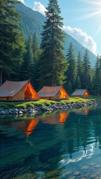 Tapeta z największym współczynnikiem wyświetleń/pobrań: Drzewa nad zamglonym jeziorem o zachodzie słońca nad górami, dodana przez GraGorek Gratulujemy!
