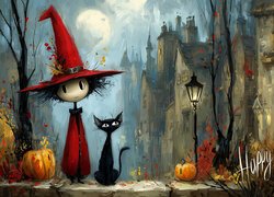 Tapeta dnia wybrana !! Wygrała tapeta Kot, Dynie, Domy, Halloween, Grafika AI [LINK], dodana przez thean Gratulujemy!!