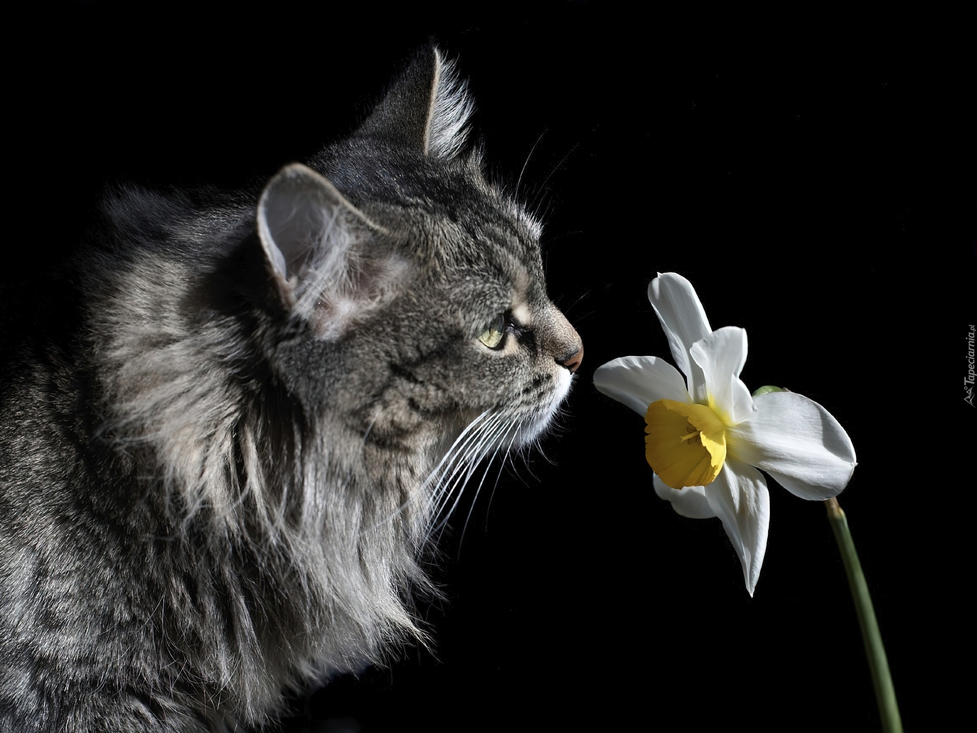 Ten kotek zna się na zapachach kwiatów :)