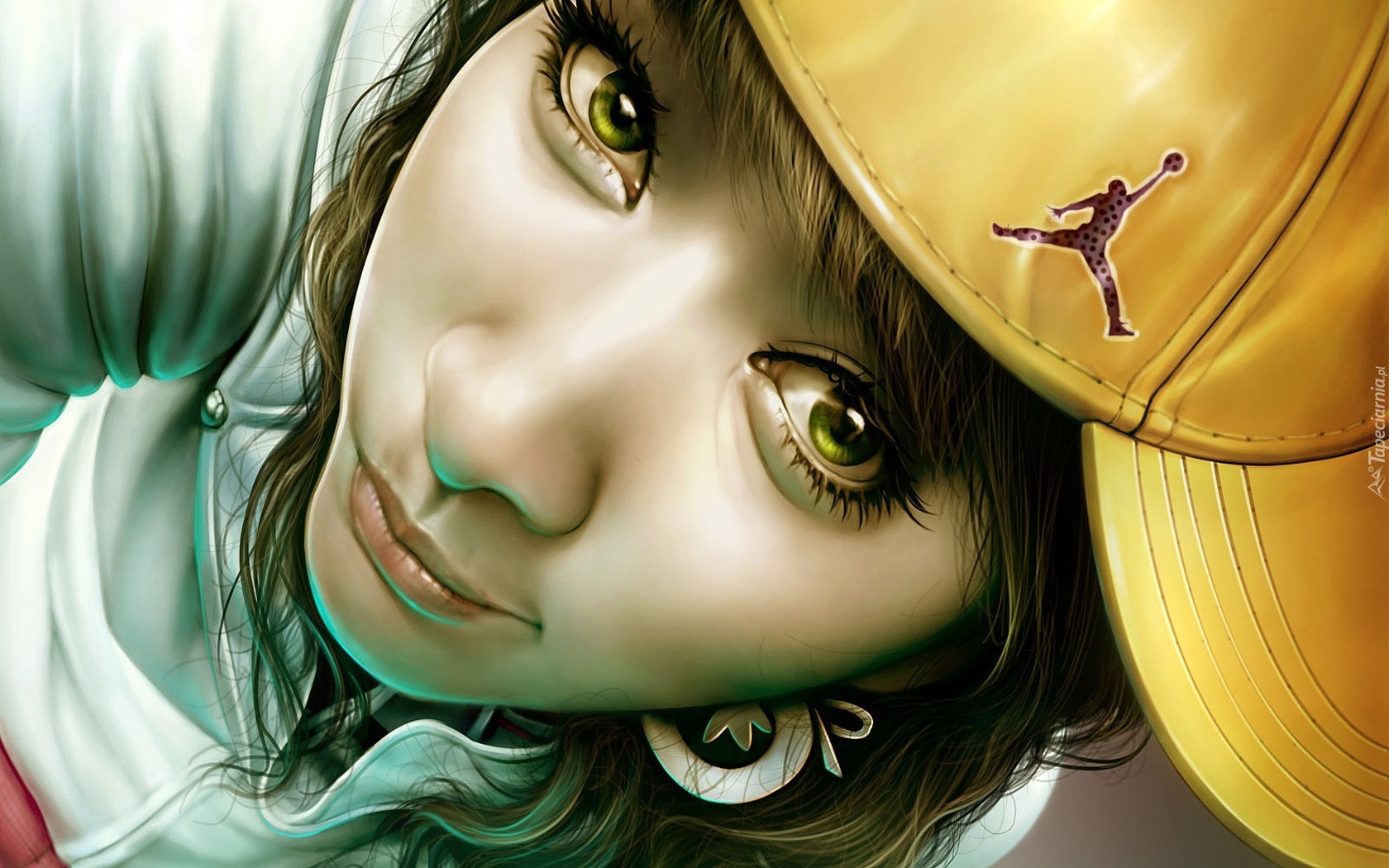 Dziewczyna, Czapka, Zielone, Oczy