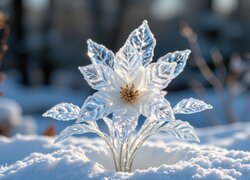 • Wodospad i ośnieżone drzewa na skałach w zimowej scenerii