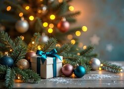 Opis: Boże Narodzenie, Choinka, Bombki, Życzenia, Grafika AI