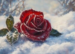 Opis: Zima, Drzewa, Las, Wschód słońca, Grafika AI