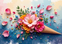 Opis: Kwiaty, Płatki, Rożek, Wafel, Tło