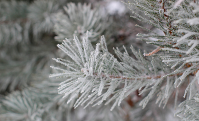 Tytuł: Oszronione gałązki sosny