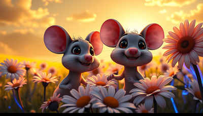 Tytuł: Dwie myszki wśród kwiatów