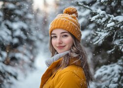 Opis: Zima, Droga, Domy, Choinki, Boże Narodzenie, Grafika AI