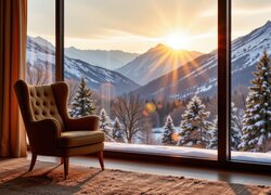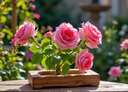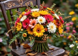 Opis: Bukiet, Kwiaty, Drewniane, Krzesło, Liście