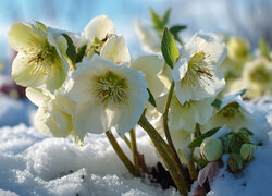 Opis: Żółte, Ciemierniki, Śnieg, Zima, Grafika AI