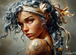 Pod rondem kapelusza, cisza ubrana w czerń i kwiat storczyka