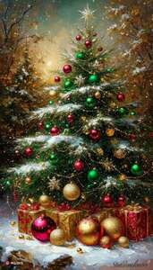 Tytuł: Prezenty pod choinkami i domy w dolinie na tel gór