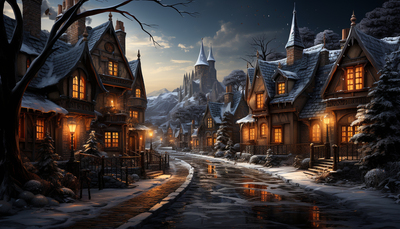 Opis: Choinka, Drewno, Śnieg, Boże Narodzenie, Grafika AI