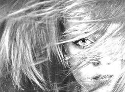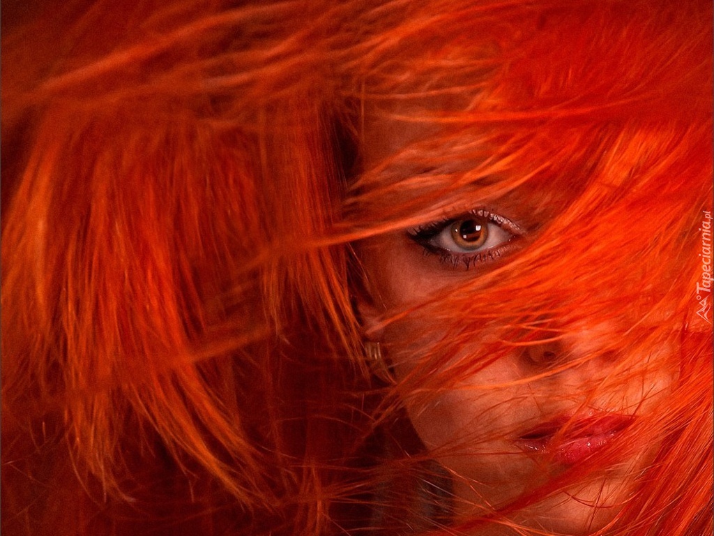 Edytor tapety: Dziewczyna, Oko, Czerwone, Włosy