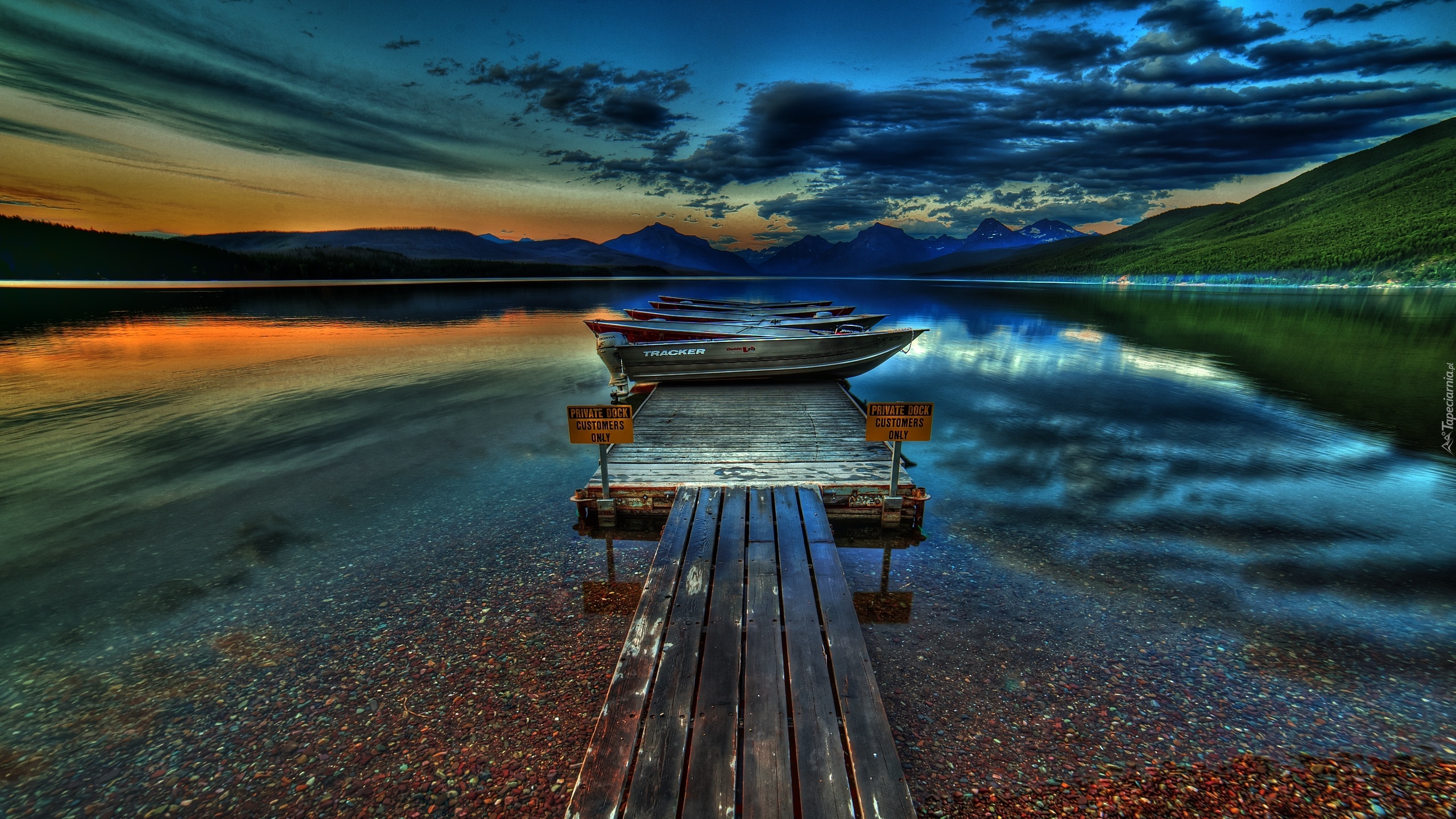 Edytor tapety: Chmury, Jezioro, Mostek, Łódki