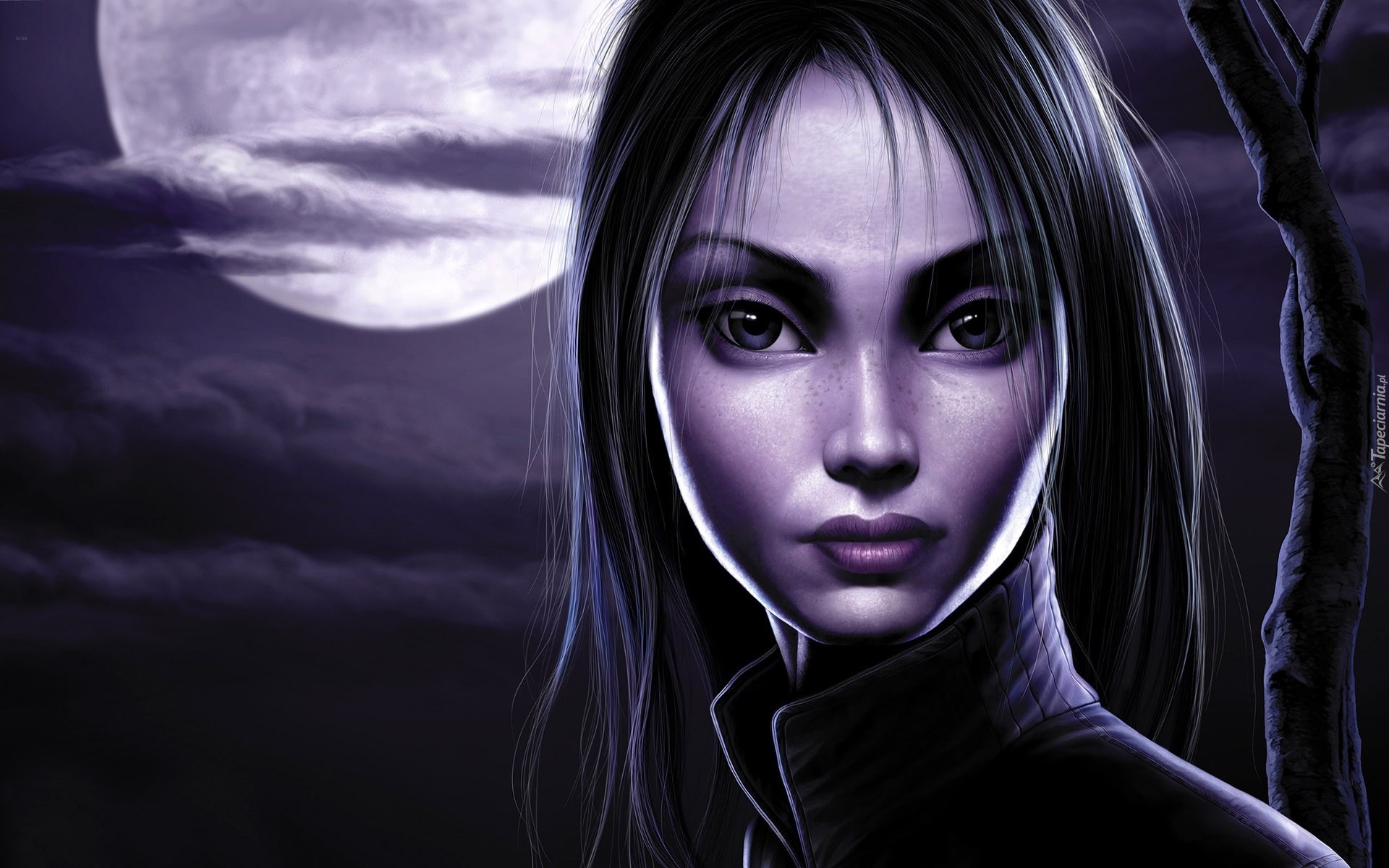 Edytor tapety: Dziewczyna, Spojrzenie, Księżyc