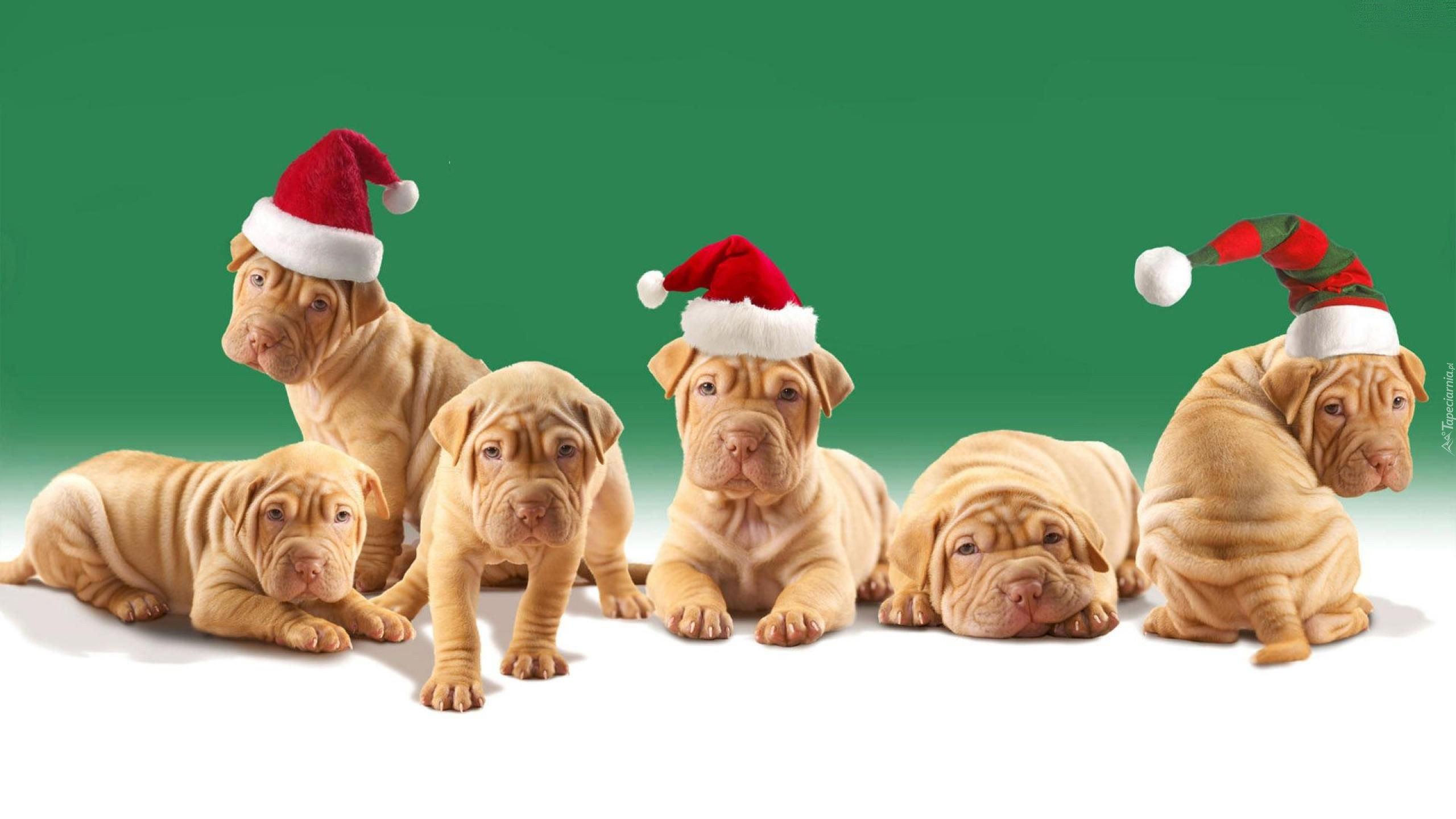 Edytor tapety: Psy, Czapki, Mikołaja, Shar Pei