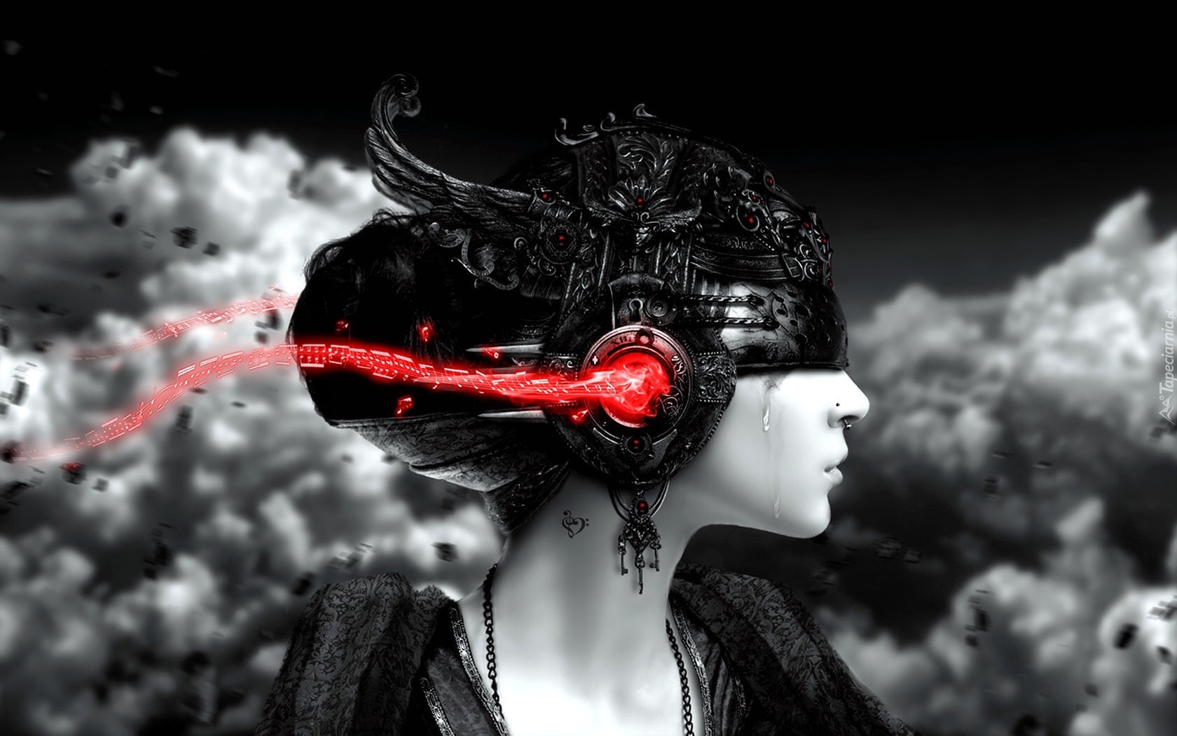 Edytor tapety: Kobieta, Czerwone, Nuty, Muzyka
