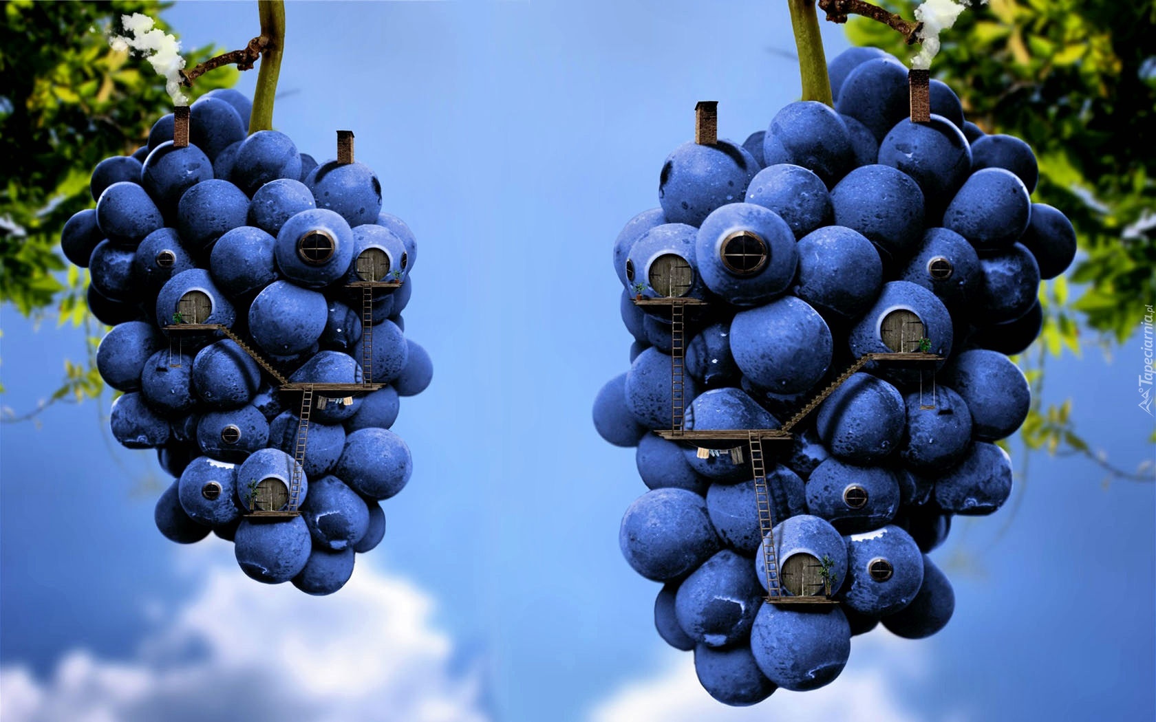 Edytor tapety: Niebieskie, Winogrono, Budowla