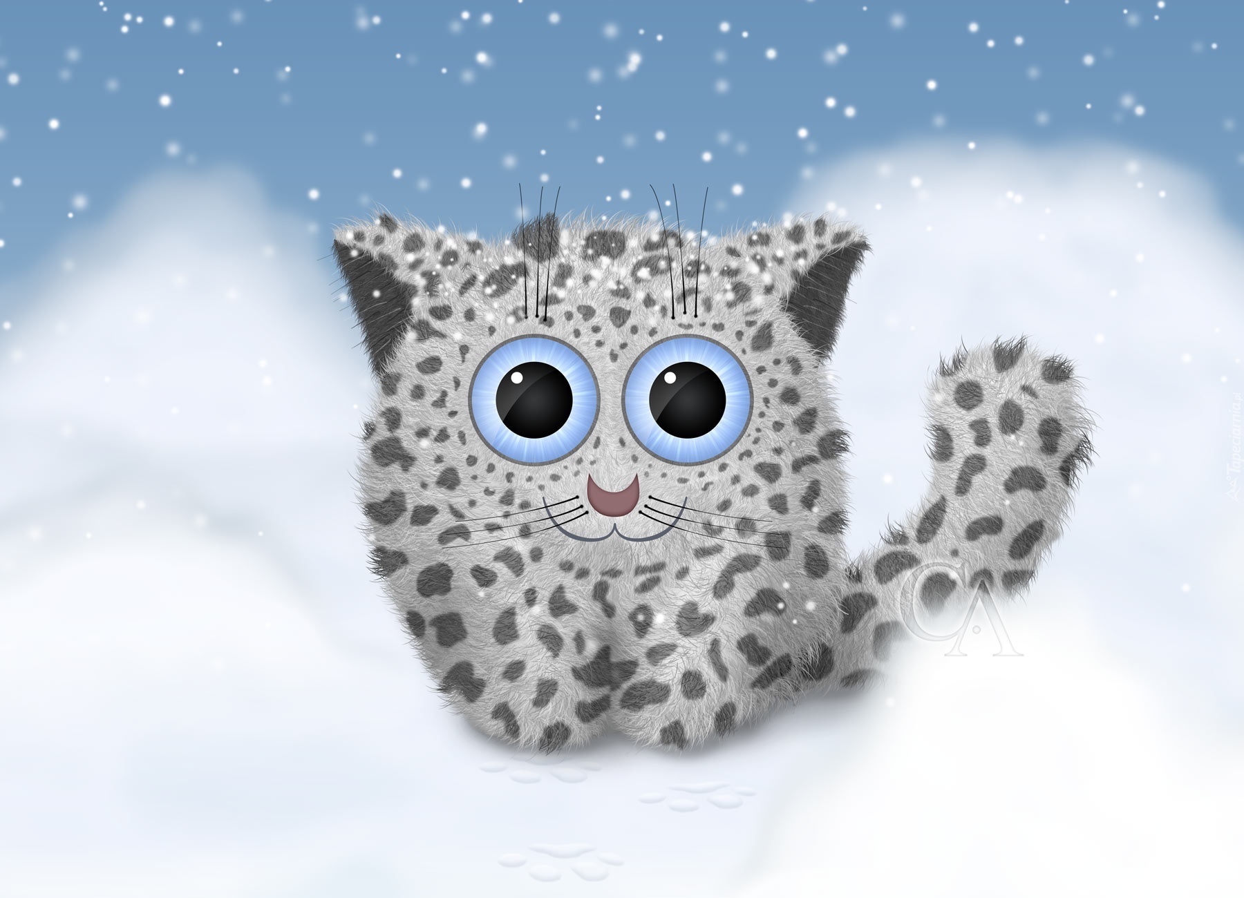 Edytor tapety: Śmieszny, Lampart, Śnieg, Grafika
