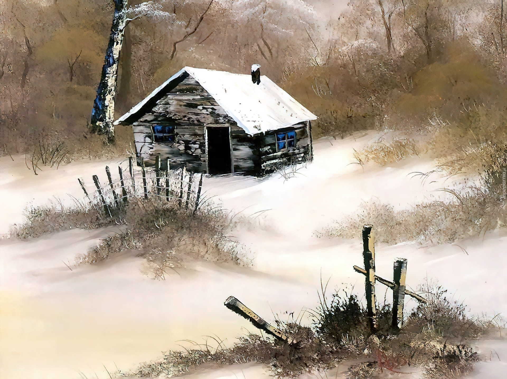 Edytor tapety: Zima, Chata, Las