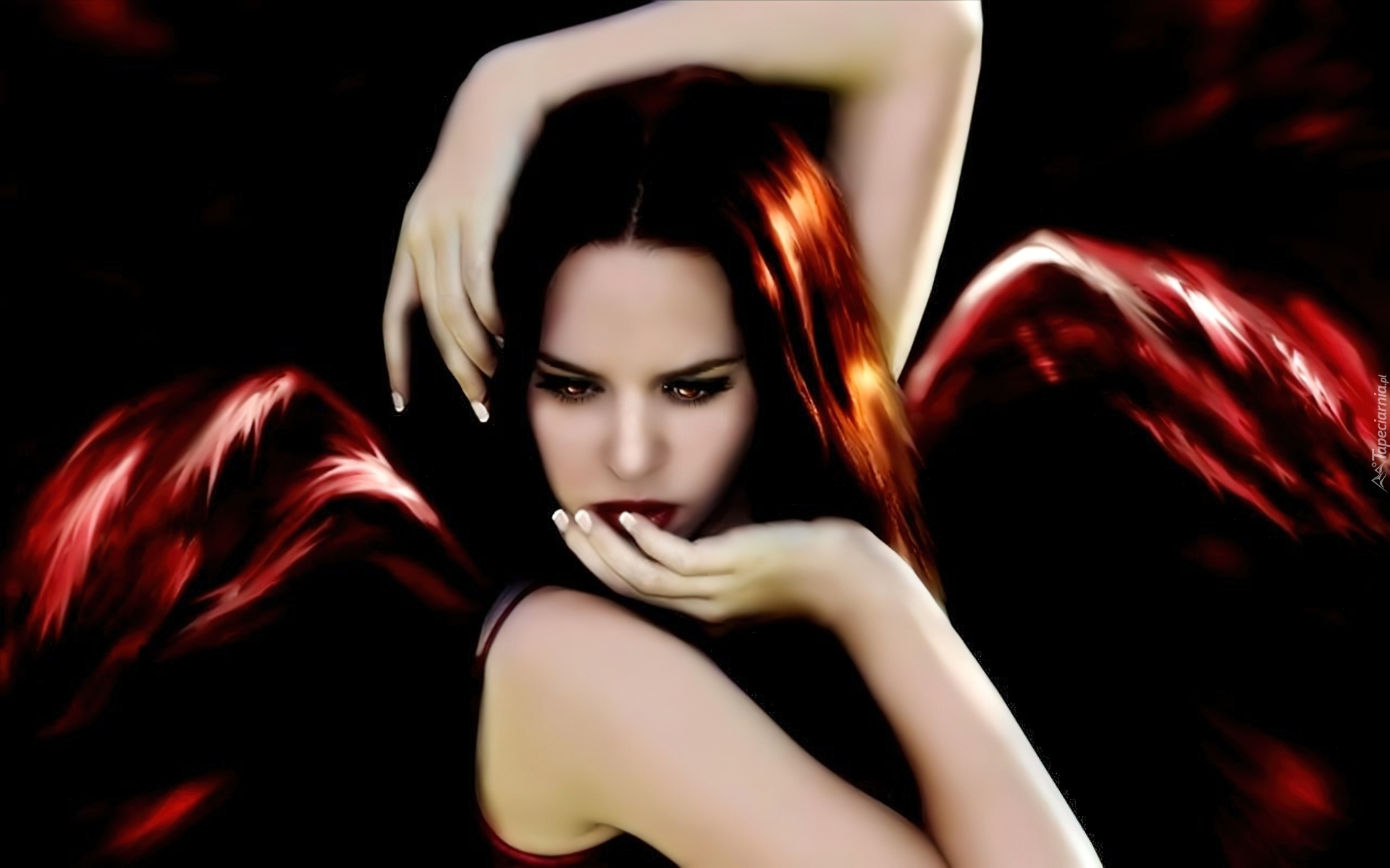 Edytor tapety: Kobieta, Twarz, Skrzydła