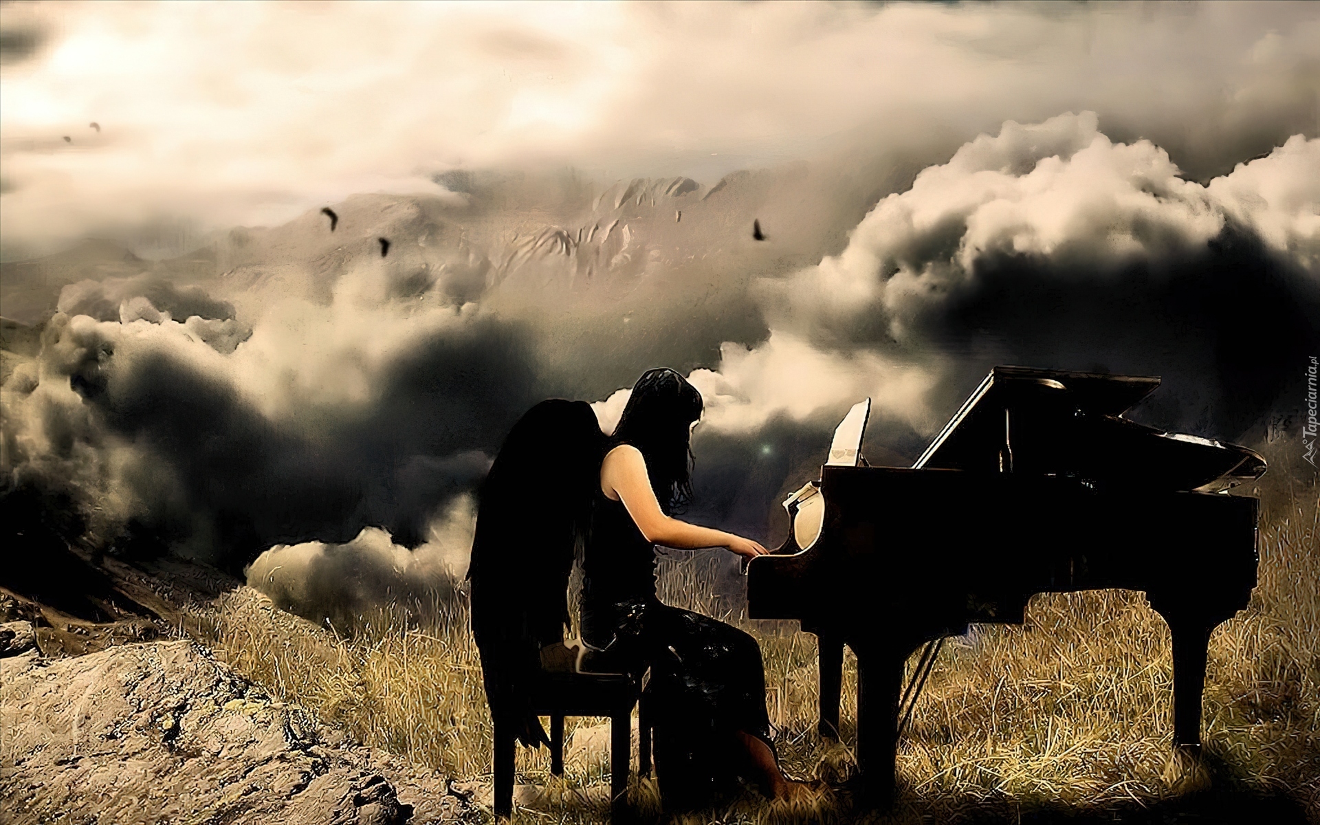 Edytor tapety: Anielica, Góry, Chmury, Fortepian