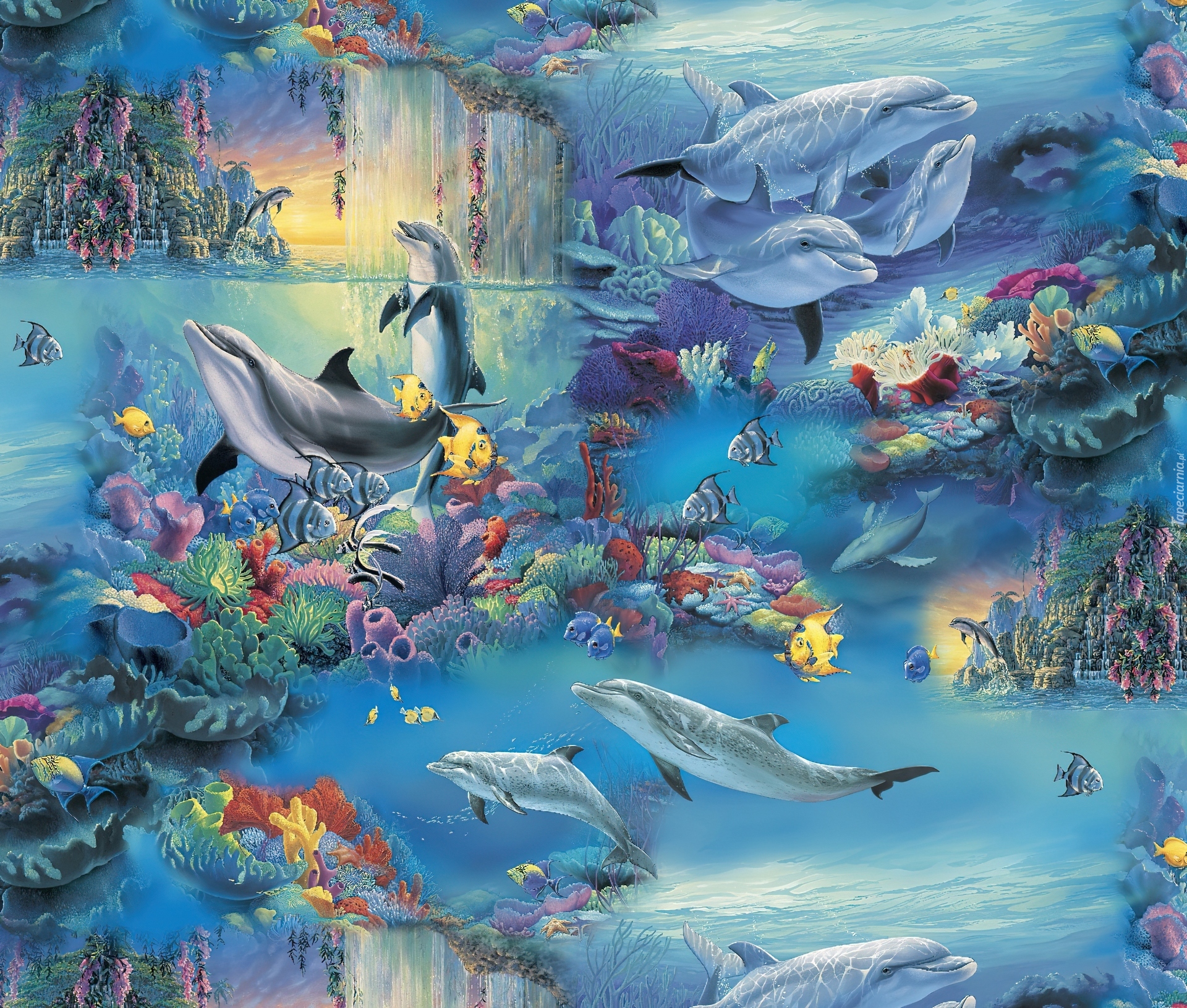 Edytor tapety: Delfiny, Rybki, Ocean, Art, Fantasy