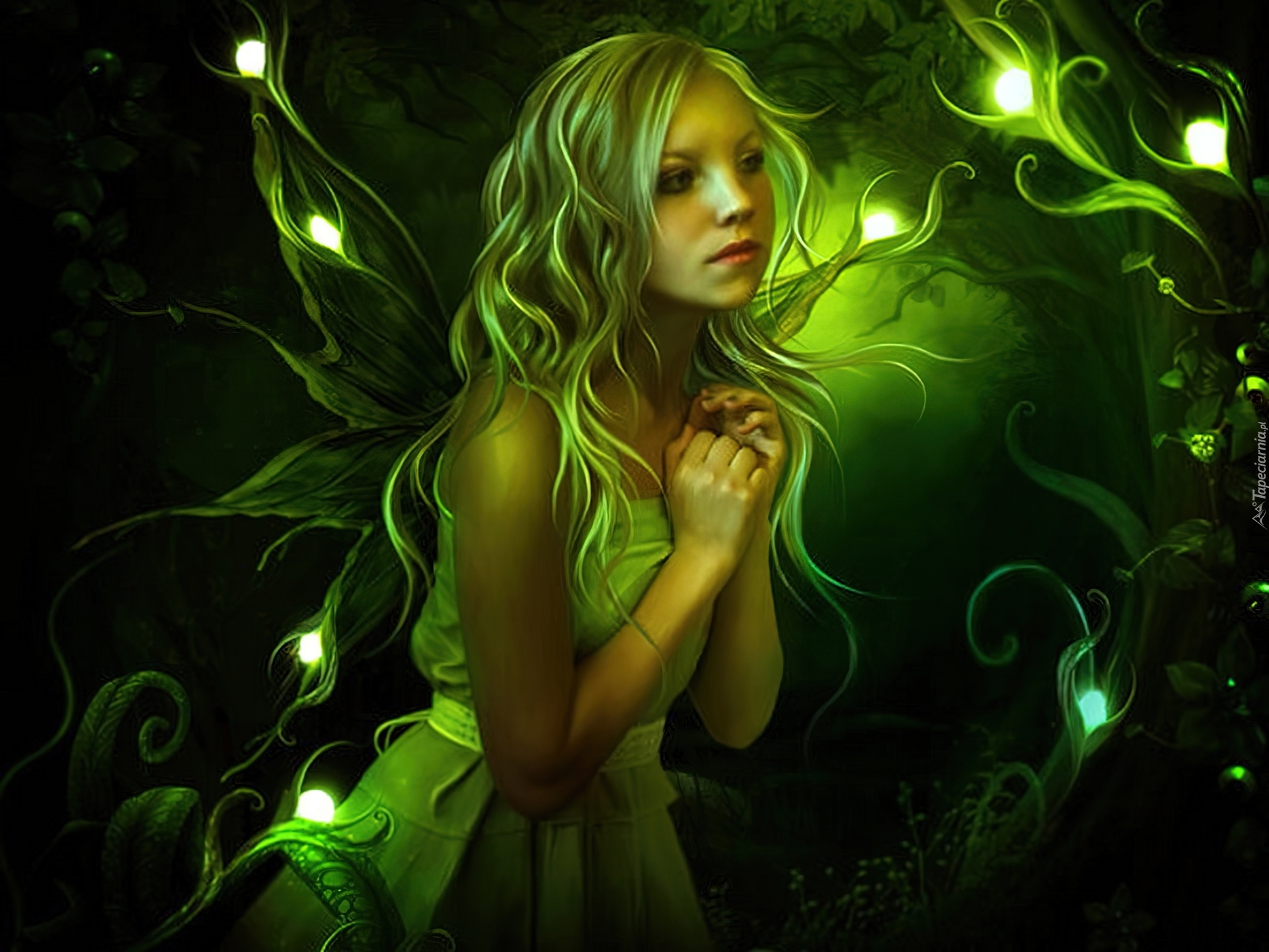 Edytor tapety: Dziewczyna, Rośliny, Świetliki