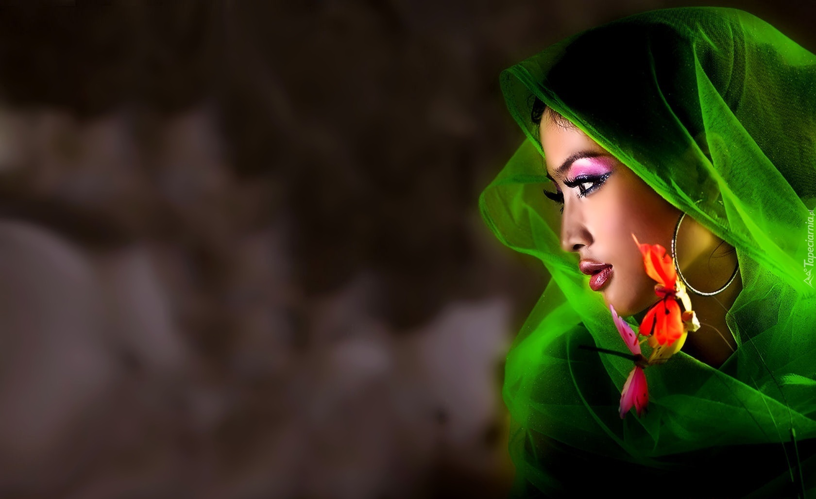 Edytor tapety: Kobieta, Makijaż, Kolorowe, Kolczyki