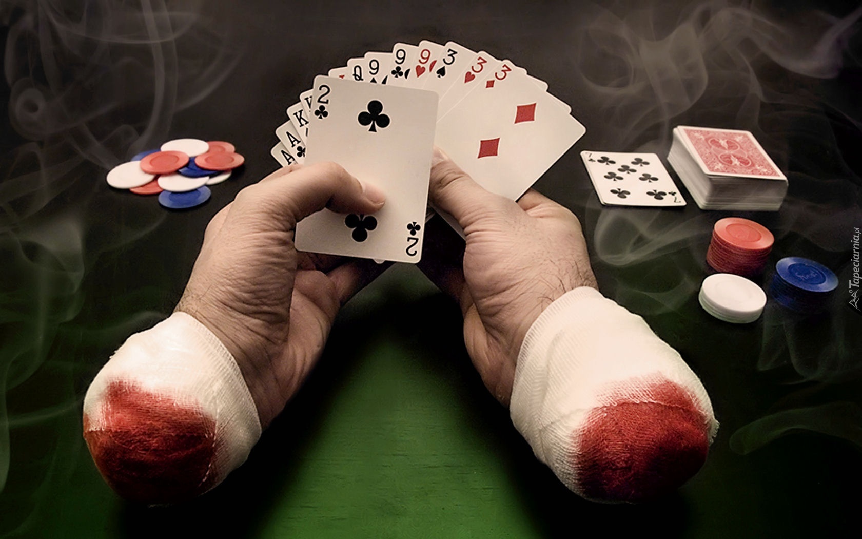 Edytor tapety: Dłonie, Karty, Dym