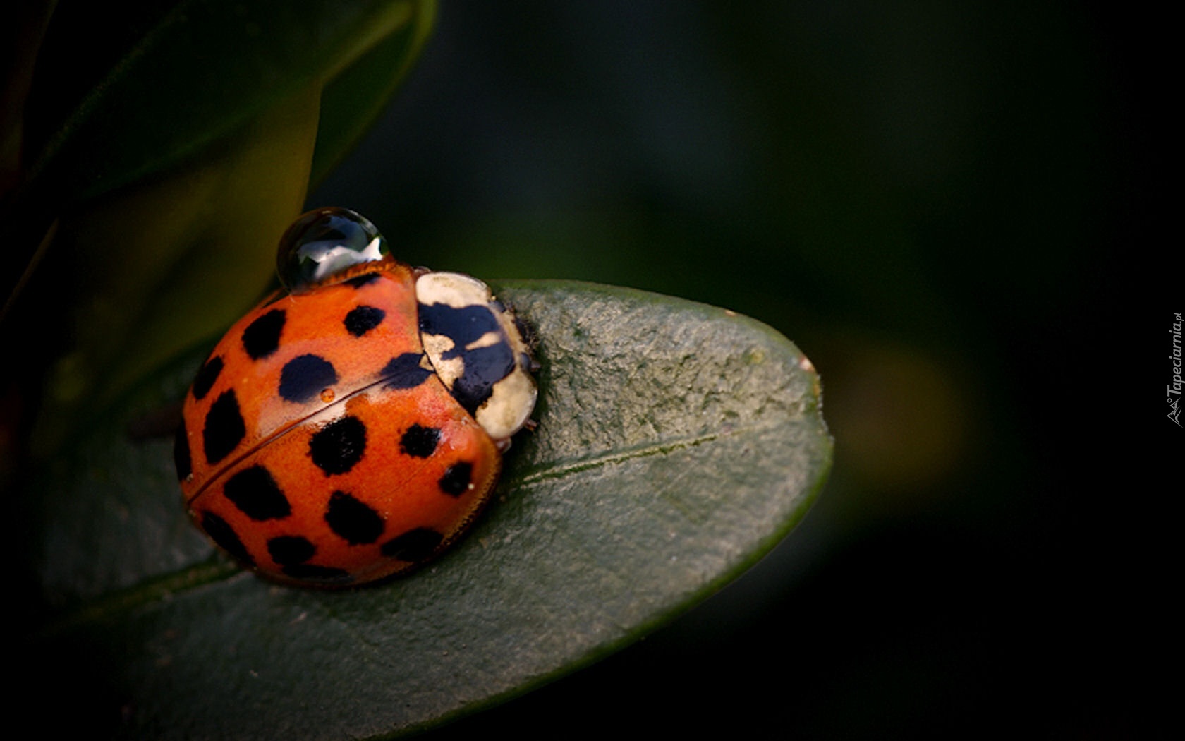Edytor tapety: Biedronka, Liść, Kropla, Wody