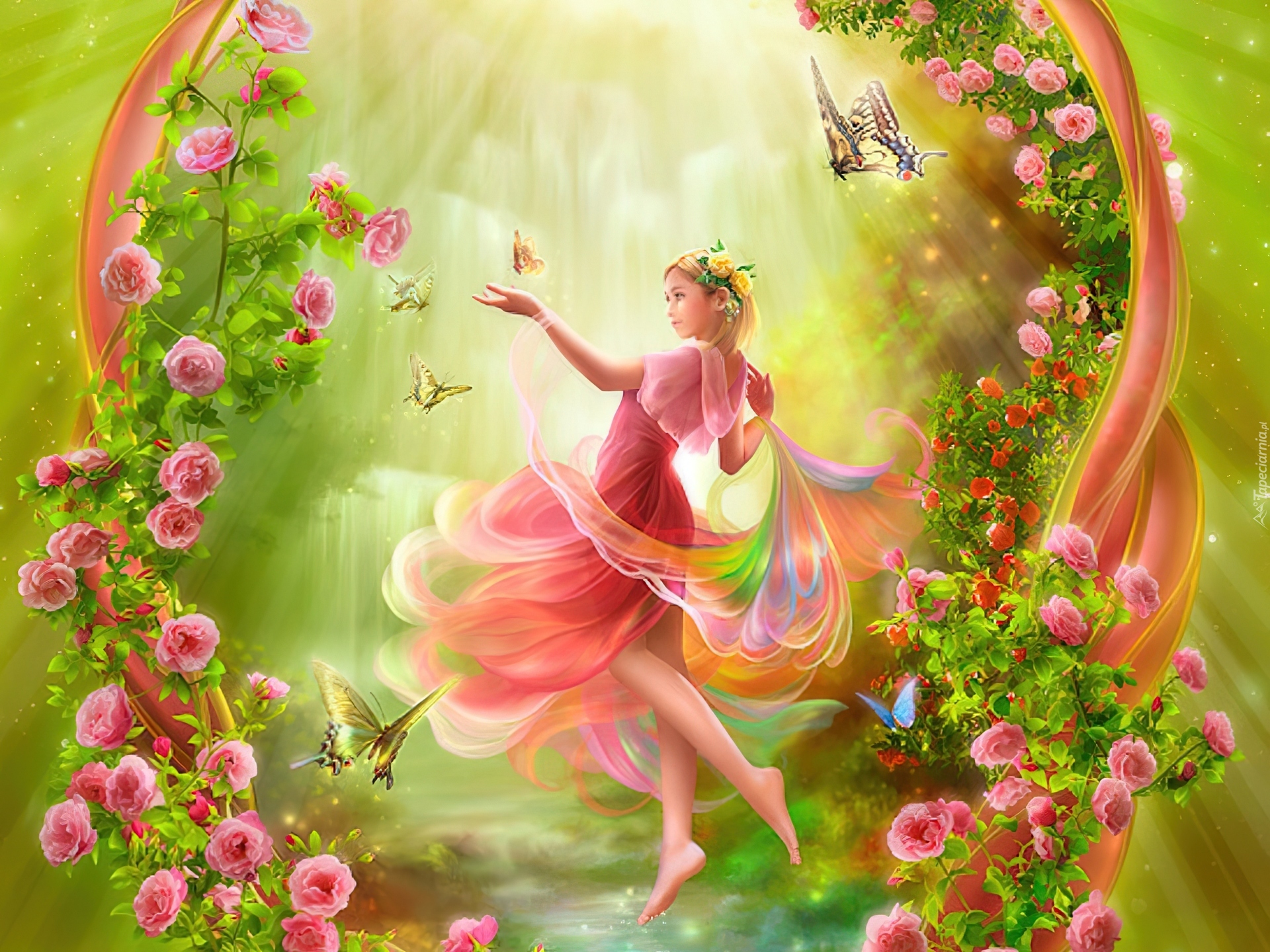 Edytor tapety: Dziewczyna, Motyle, Kwiaty
