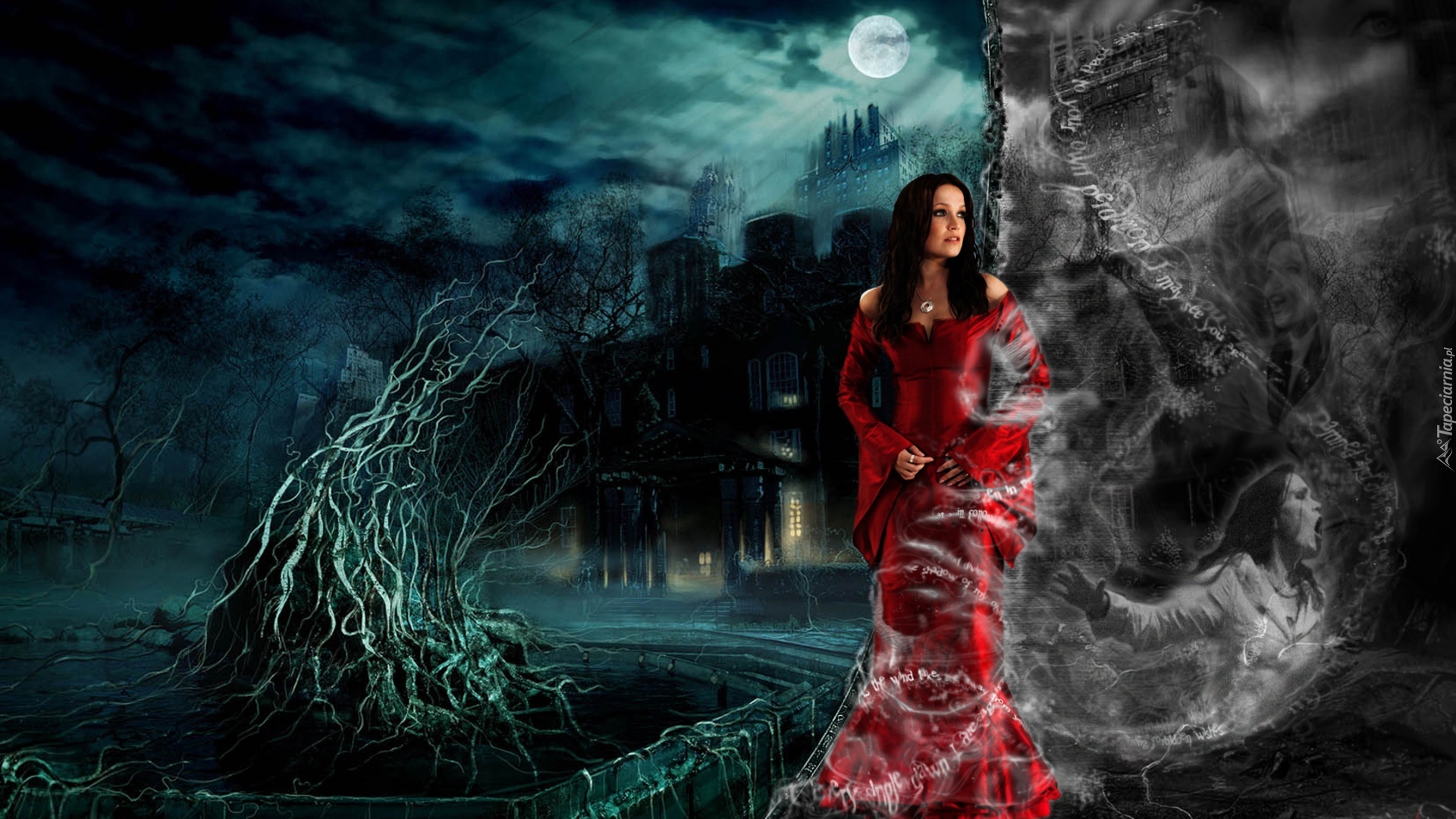 Edytor tapety: Kobieta, Fontanna, Grafika