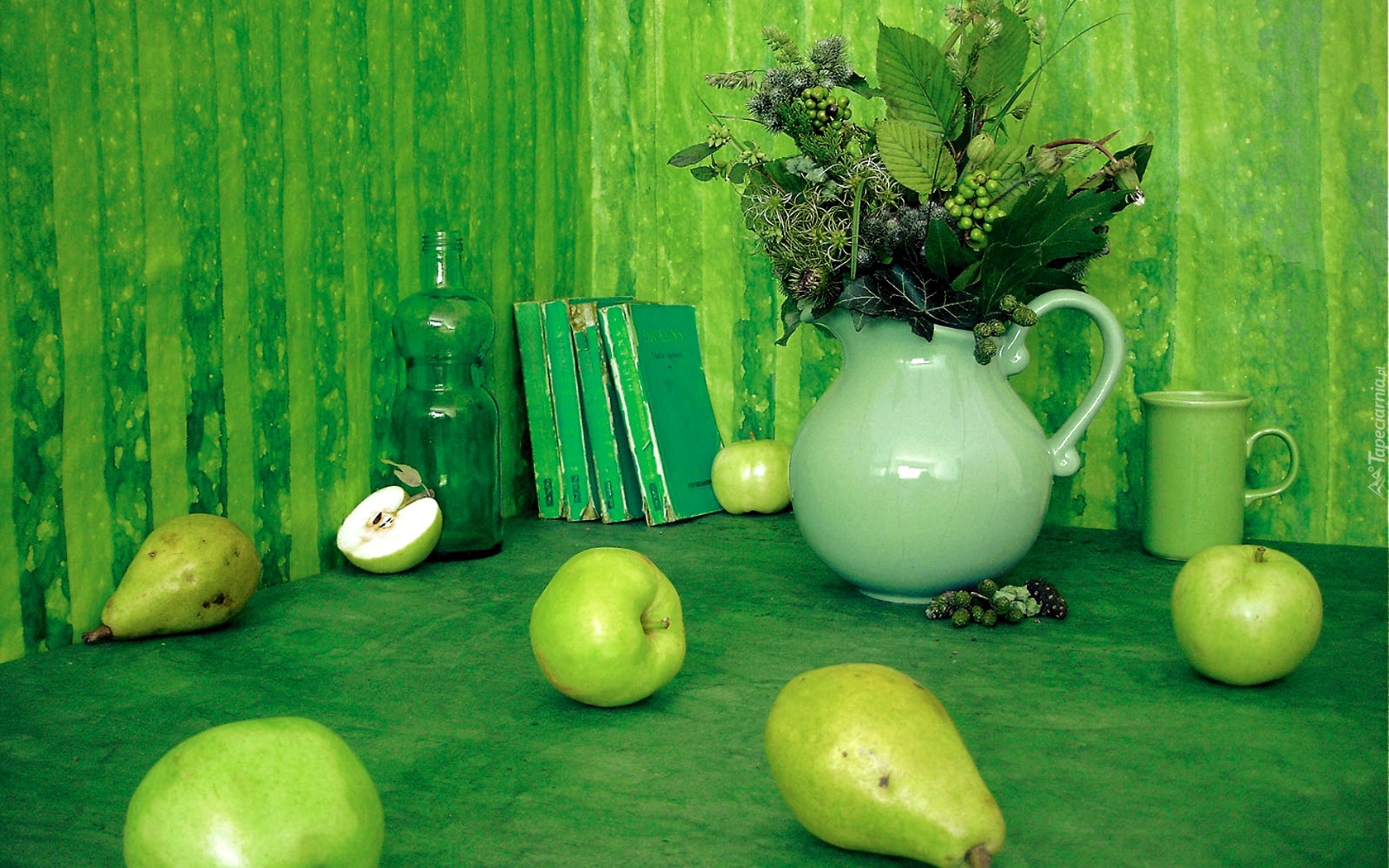 Edytor tapety: Dzbanek, Gruszki, Jabłka