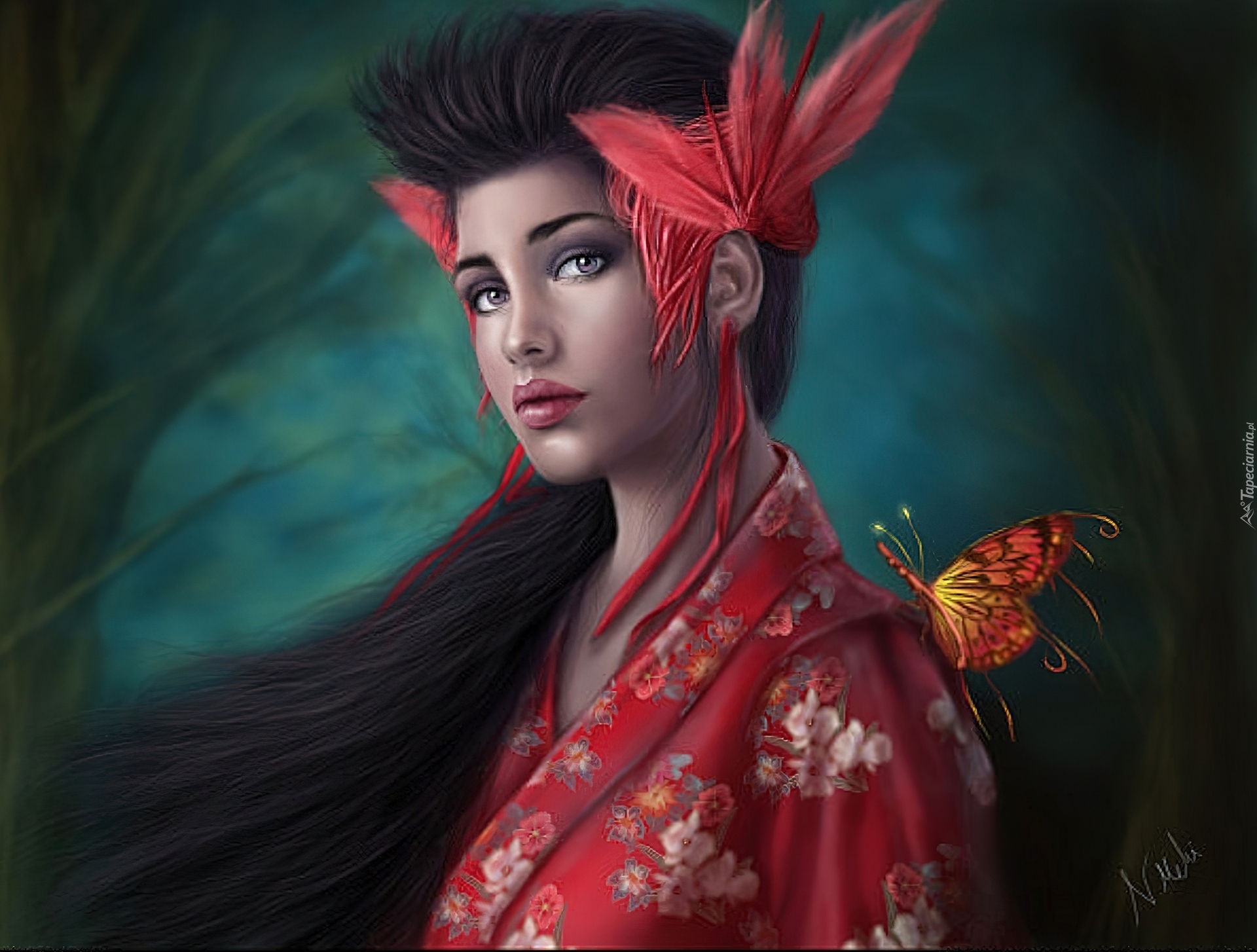 Edytor tapety: Kobieta, Spojrzenie, Motyl