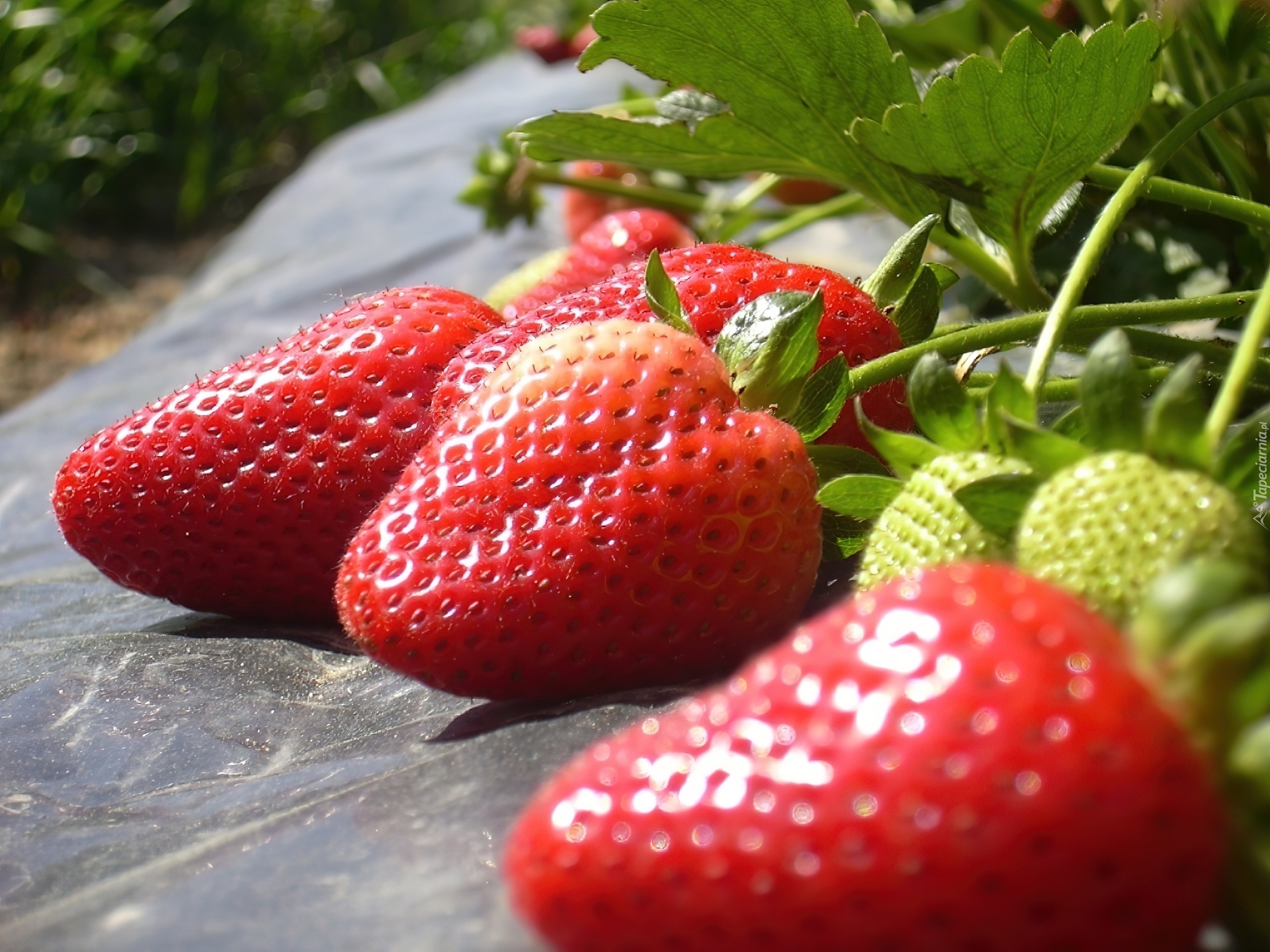 Edytor tapety: Zielone, Listki, Truskawki